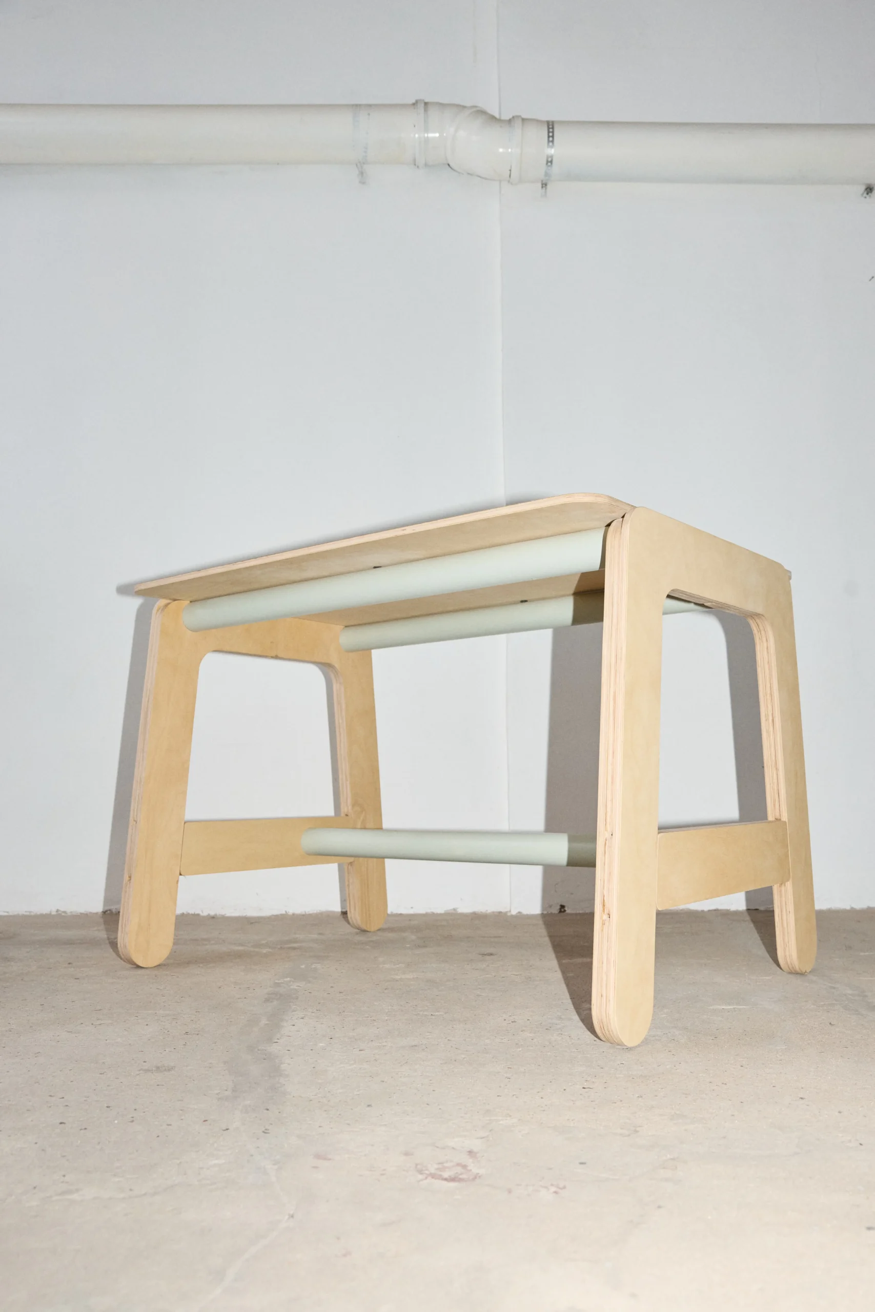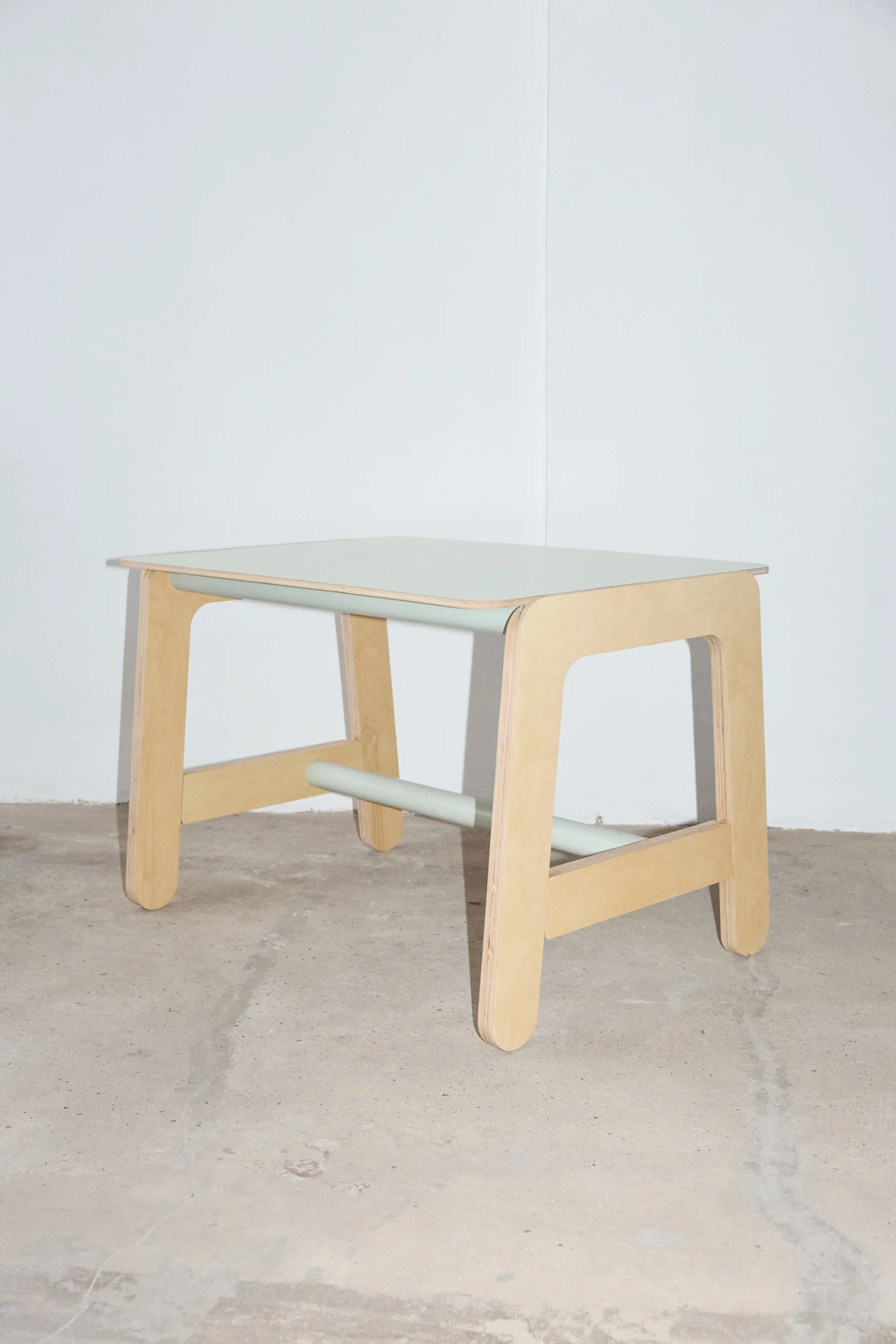 Multilaminado, tubos de hierro laqueado y revestimiento de Formica. (tabla de 80 x 110 cms x 75 cms de altura)